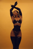Open cup strappy harness bra with o ring and rivet metal hardware detail, available in Gold or Silver.